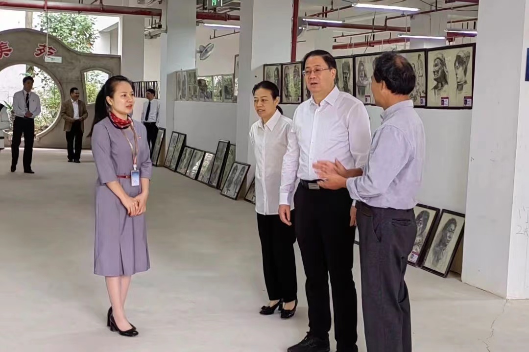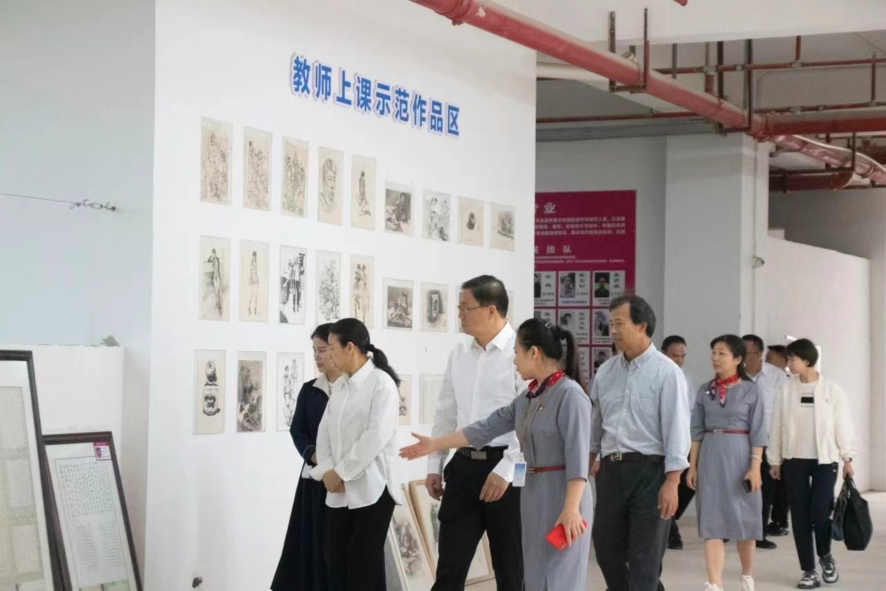 我校张毅书记汇报了我校办学历史,我校主要开设有绘画、戏曲表演、运动训练、机器人技术应用、现代家政服务与管理和计算机平面设计6个专业,办学以来为大学输送大批优秀学子。