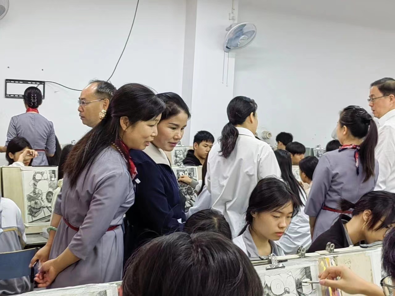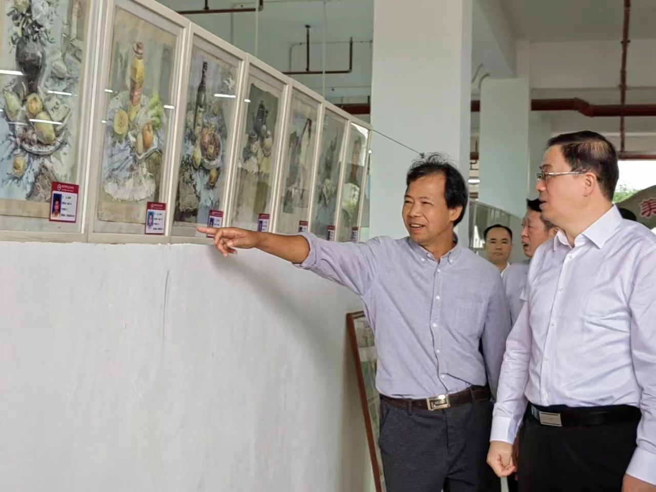 图丨 向调研组成员介绍我校陈校长的画作 ⬆