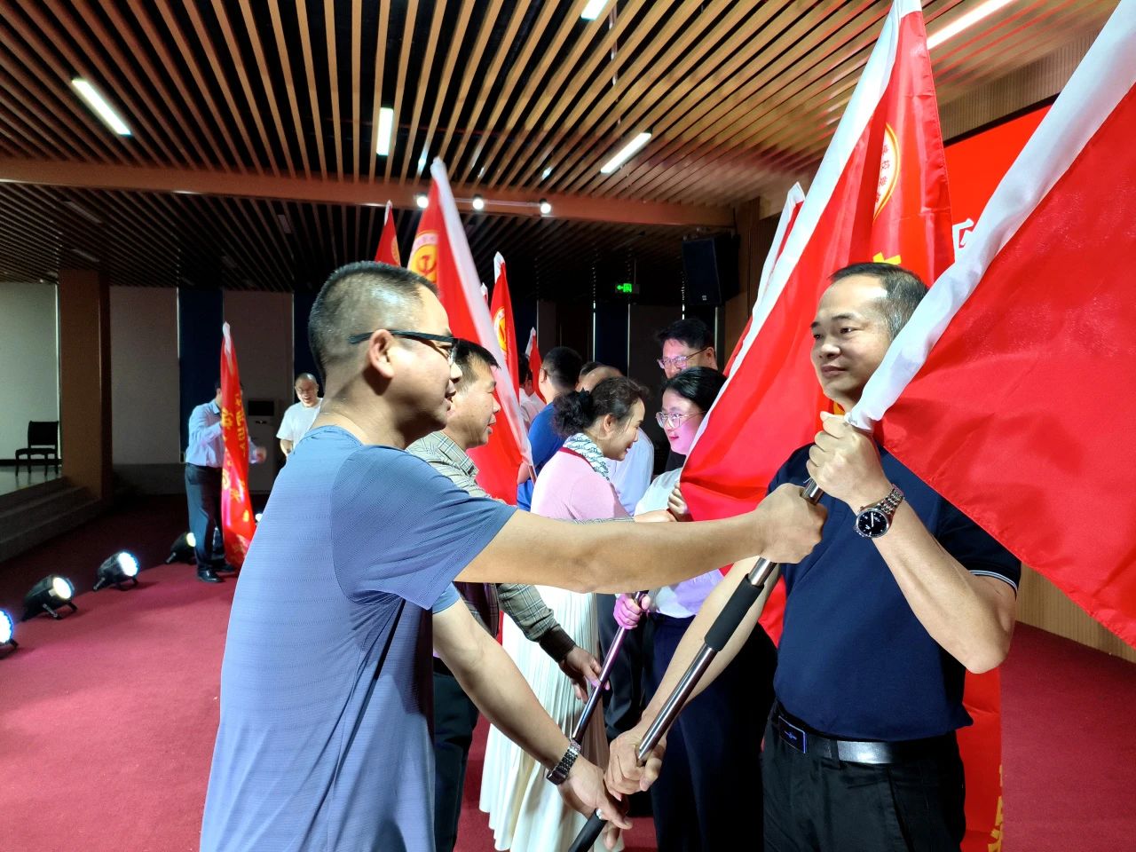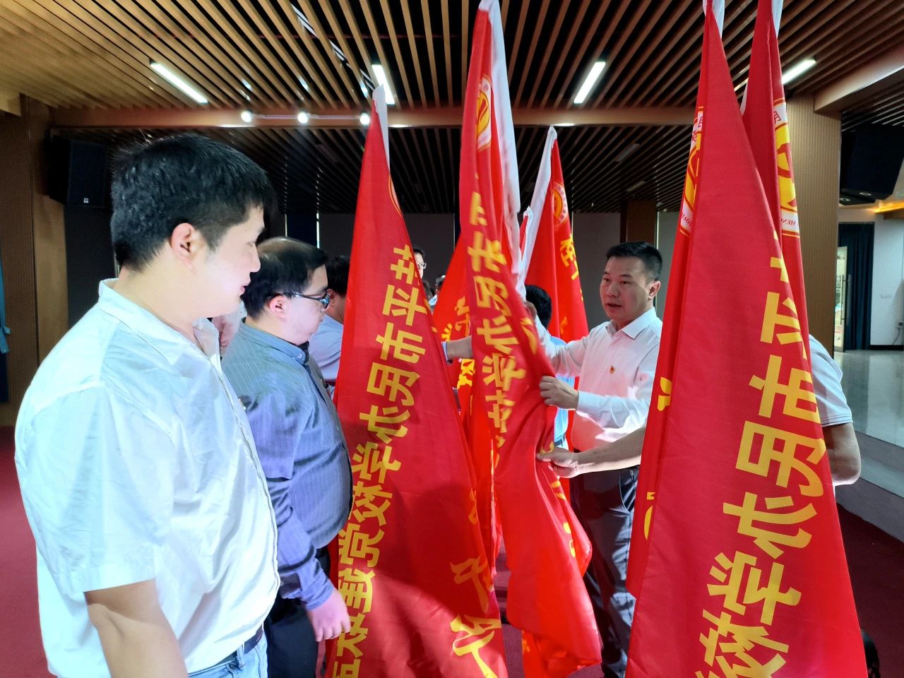 图↑ 由星空(中国)党支部移交盟旗给兴桂中学党支部,下次主题党日活动由兴桂中学党支部书记杨小军主持。