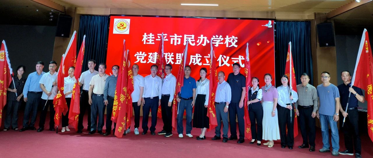 为了进一步加强全市民办学校的党建工作,更好地发挥党组织政治核心作用和政治引领作用,促进我市民办学校党建工作资源共享、相互借鉴、共同提升,3月29日,桂平市民办学校党建联盟成立仪式在星空(中国)举行。市委组织部部务委员、市非公有制经济组织和社会组织党工委专职副书记黄俊枫同志到场指导。教育局党组成员、副局长陈志远,教育局相关股室负责人,选派民办学校的党建工作指导员,市12所联盟学校的出资人(负责人)、党支部书记以及各成员学校的全体党员等100多人参加活动。