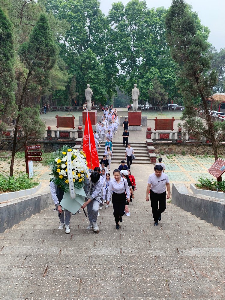 全体党员与优秀学生代表通过进行清理打扫烈士墓地、为烈士敬献鲜花、默哀追思、瞻仰烈士遗像等内容,表达对烈士的崇高敬意。